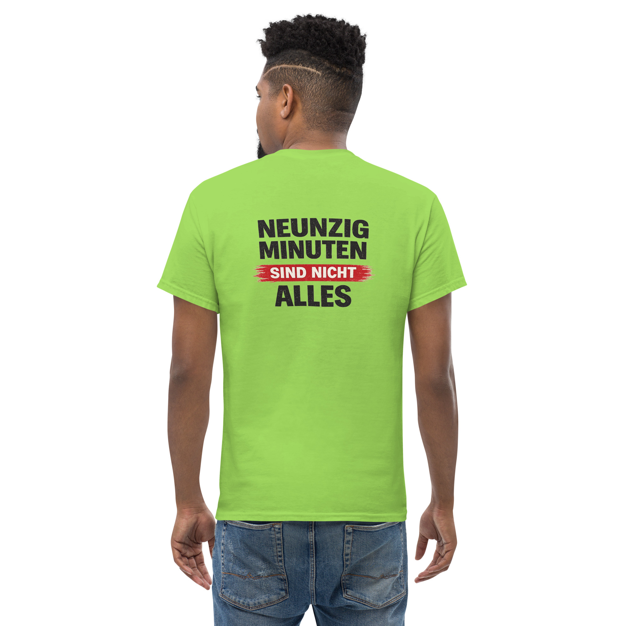 Der Schriftzug ist ruhig, klar und nachdenklich. Weniger Parole, mehr Wahrheit. Ein Design für alle, die Fußball nicht nur spielen, sondern leben.